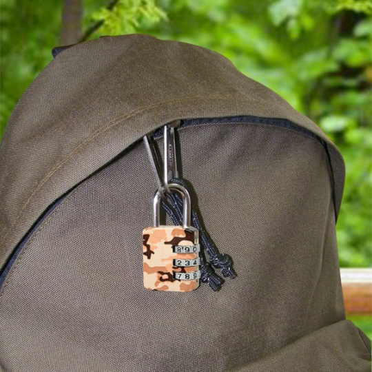Visací kombinační zámek 1509EURDCAMO pro všeobecnou ochranu. Zinkové tělo zámku je o šířce 30mm. Ocelový třmen o průměru 5mm je dlouhý 22mm a je vyroben z pochromované oceli a nabízí odolnost proti řezání a řezání. Vlastní nastavení 3-místné kombinace zámku nabízí pohodlí bez klíče.