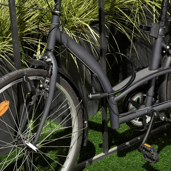 Ocelové kroucené lanko na klíč o délce 65cm a průměru 8mm má vinylový potah, který zabraňuje poškrábání. Obsahuje integrovaný zajišťovací mechanismus s válcovým klíčem, součástí balení jsou 2ks klíčů a montážní konzola pro snadnou přepravu.