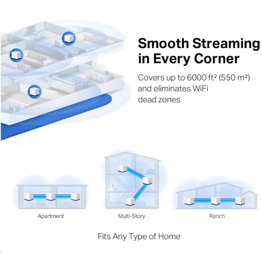 - Pokrytí celé domácnosti – pokrytí prostoru až 6 000 ft2 (550 m2) vysokorychlostní sítí Wi-Fi, eliminující mrtvé zóny Wi-Fi ve vaší domácnosti.