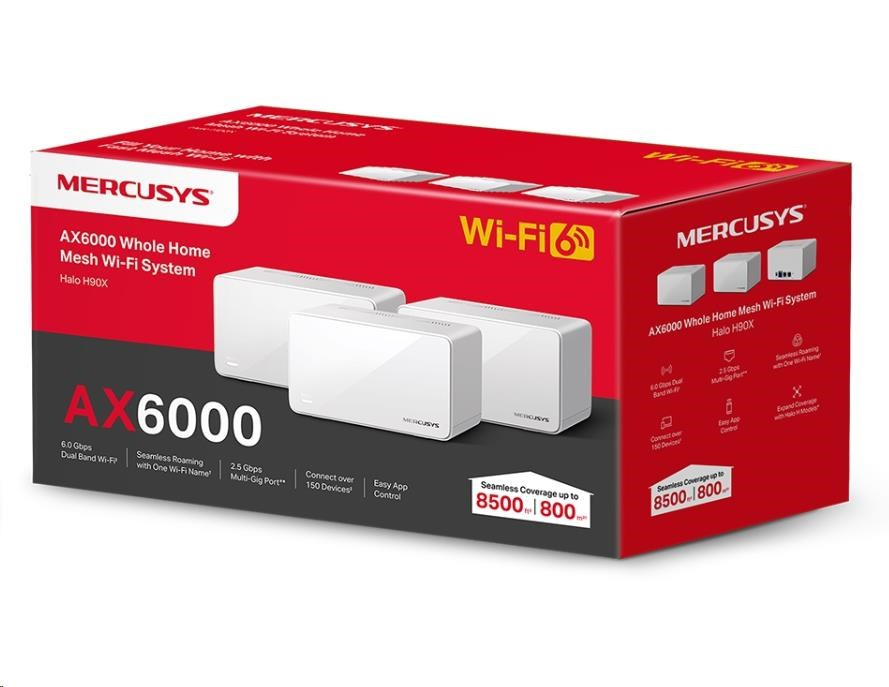 MERCUSYS Halo H90X(3-pack) WiFi6 Mesh (AX6000,2,4GHz/5GHz,1x2,5GbELAN/WAN,2xGbELAN/WAN)
