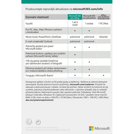 Klíčové vlastnosti služby Microsoft 365 pro rodiny (elektronická licence)