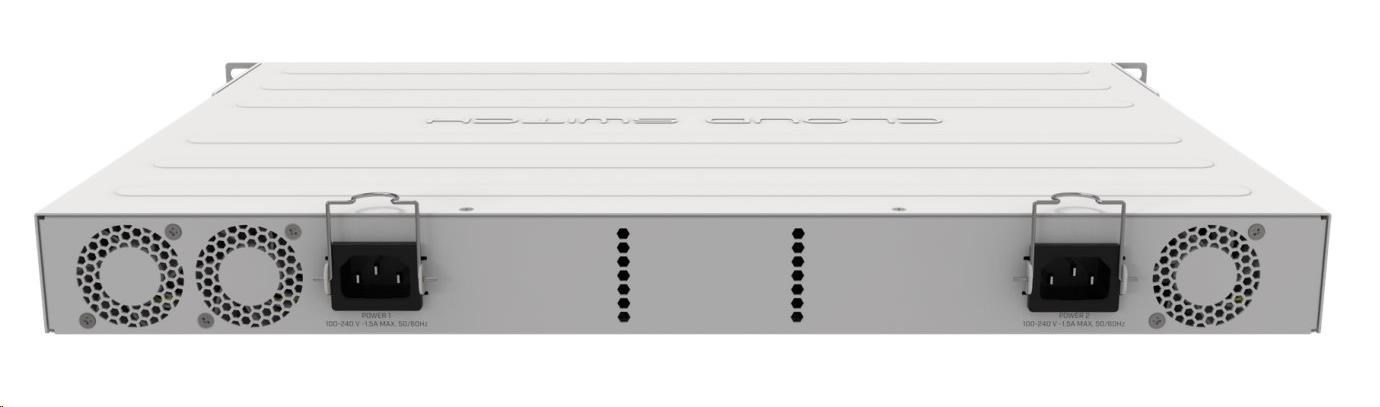 CRS354-48G-4S+2Q+RM má dva integrované zdroje s redundantní funkcí. V případě selhání napájení na primárním zdroji může funkci zastoupí zdroj druhý, který je v tu chvíli již připraven. Výpadek jednoho zdroje tedy neohrozí chod vaší sítě.