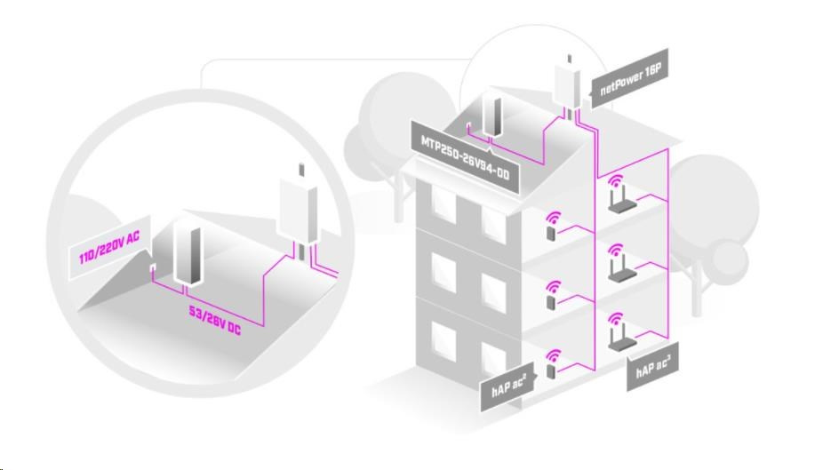 Venkovní AC/DC napájecí zdroj v odolném kovovém šasi s výstupním napětím 26 V, max. výstupním proudem 9.4 A, celkovým výkonem 250 W vhodné pro řadu produktů netPower od MikroTiku. Šasi má certifikaci IP67 s extra ochranou proti prachu a vlhkosti. Zdroj je zakončen dvěmi odholenými kabely bez konektorů - vstupní 3-žilový AC kabel 230 V AC (100 - 240 V AC) a výstupním DC kabelem