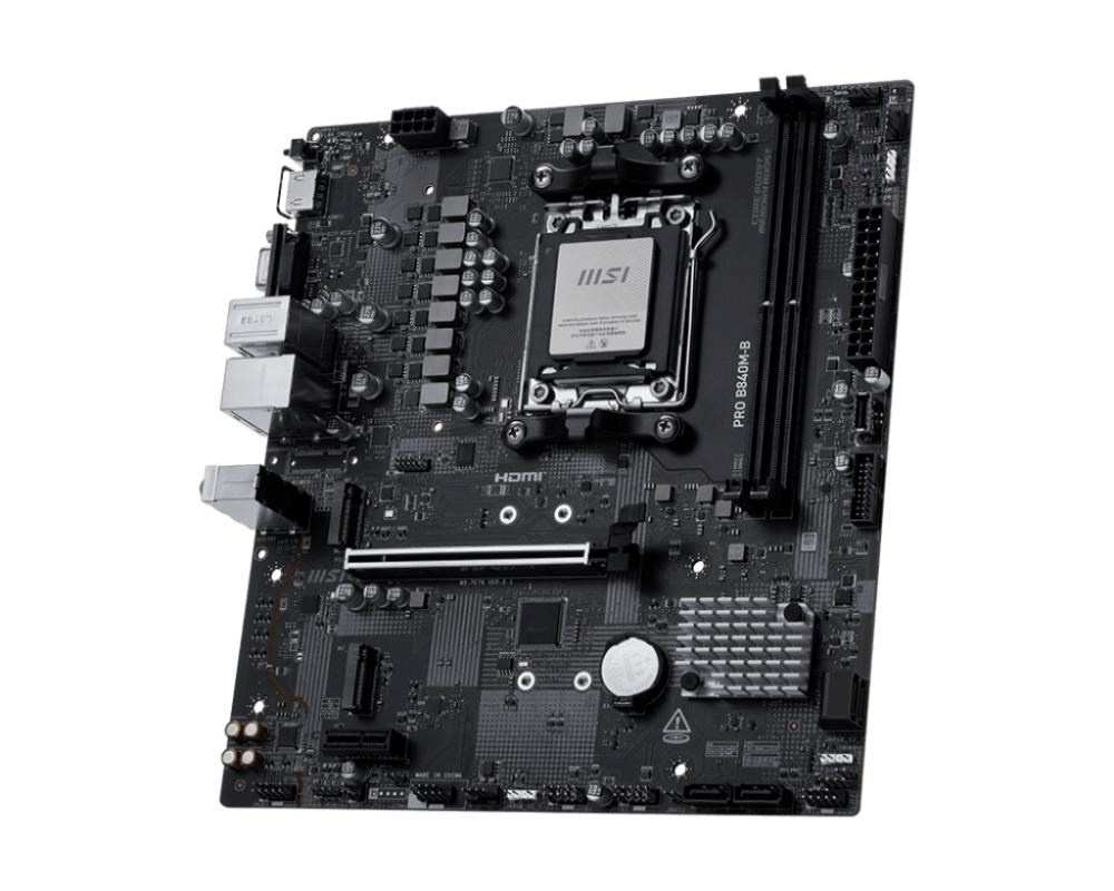 PRO B840M-B is engineered with many exclusive features of MSI, PCIe 4.0 M.2, EZ PCIe Clip II, 2.5G LAN, and Front Type-C, ready for the AMD Ryzen 9000 series processors.
