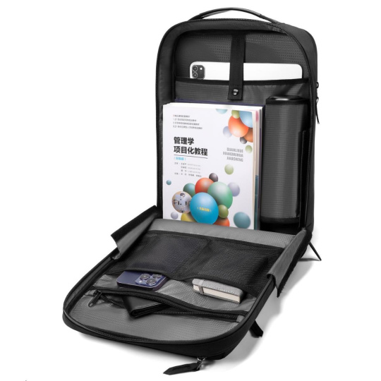 Hlavní kapsa batohu je přehledně členěna do vnitřních kapes a přihrádek. Dále je vám k dispozici velká zadní kapsa, dvě přední kapsy, skrytá kapsa a kapsa na láhev.