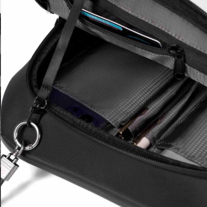 Úložný prostor tašky je rozdělen do dvou hlavních kapes, několika vnitřních kapes a skryté kapsy. Vše lze přehledně uložit a vyhnout se hledání a přehrabování.