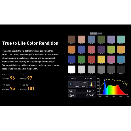 • Přesný a velmi barevný výkon podobný pokročilým světlům Nanlite