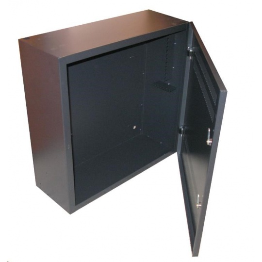 šířka: 540mm, hloubka 200mm, perforované dveře, 1x zámek, černý