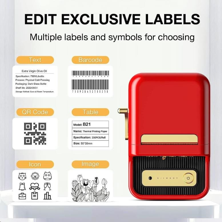 Zapomeňte na zdlouhavé a komplikované procesy tisku etiket. S NIIMBOT B21S je tisk etiket hračkou díky její bezdrátové technologii a vynikajícím funkcím. Tato přenosná tiskárna etiket je vybavena dobíjecí lithiovou baterií, která vám umožní tisknout kdekoli a kdykoli budete potřebovat po dobu 4 až 5 hodin. S NIIMBOT B21S můžete jednoduše označovat věci v kanceláři, škole, obchodě a na mnoho dalších místech. Její kompatibilita s PC a se systémy Android a iOS znamená, že můžete tisknout přímo ze svého smartphonu nebo tabletu, což zajišťuje maximální pohodlí a efektivitu.