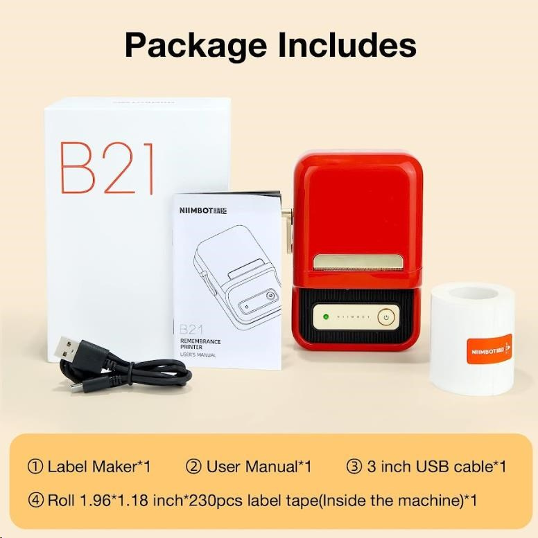 Niimbot Tiskárna štítků B21S Smart, červená + role štítků 210ks