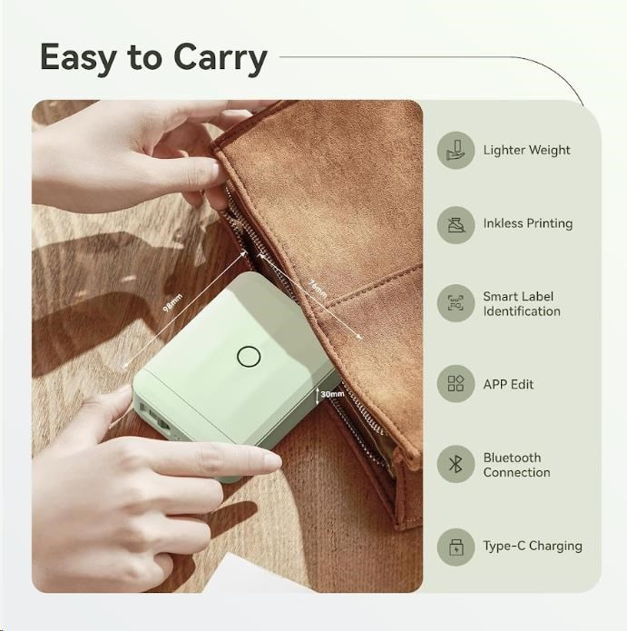 Zapomeňte na zdlouhavé a komplikované procesy tisku etiket. S inovovanou tiskárnou štítků NIIMBOT D110-M je tisk etiket hračkou. Díky Bluetooth připojení a lithiovému akumulátoru můžete polepovat bez omezení až 4 hodiny. S NIIMBOT D110-M můžete jednoduše označovat věci v kanceláři, škole, obchodě a na mnoho dalších místech. Její kompatibilita se systémy Android a iOS znamená, že můžete tisknout přímo ze svého smartphonu nebo tabletu, což zajišťuje maximální pohodlí a efektivitu.