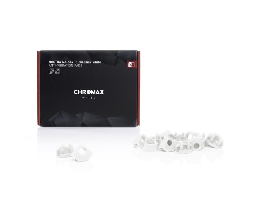 Balíček NA-SAVP5 chromax se skládá z 16 NA-AVP5 proti-vibračních podložek pro až 2 kompatibilní 92/80mm větráčky (info o kompatiblitě na stránkách výrobce).