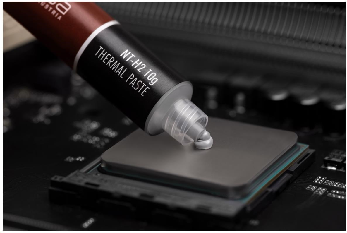 NT-H2 je dále vylepšená druhá generace oceněného hybridního tepelného vedení Noctua. Kombinací osvědčených vlastností ikonické pasty NT-H1, vynikající snadnosti použití a proslulé dlouhodobé stability s novým, jemně vyladěným složením mikročástic pro ještě lepší tepelný výkon je NT-H2 pastou pro nadšence pro nejvyšší nároky. Ať už jde o vzduchové nebo vodní chlazení, aplikace pro CPU nebo GPU, přetaktování nebo tiché systémy: NT-H2 bude důsledně poskytovat vynikající výsledky a díky přiloženým čisticím ubrouskům se stejně snadno odstraňuje jako nanáší.