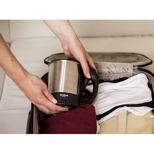 Orava elektrická cestovní konvice, 0,5 l, automatické vypnutí, ochrana proti přehřátí, krytá topná spirála, příslušentsv