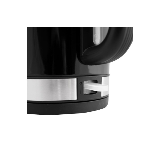 Automatická varná konvice, černá lesklá barva, Objem vody: max. 1,7 l, Napájení: 220 - 240V ~ 50/60 Hz, 1 850 - 2 200W, VDE zástrčka, Varná nádoba na odnímatelném 360 ° otočném podstavci, Topné těleso překryté deskou z ušlechtilé oceli, automatické vypnutí, Ochrana před ohřevem bez vody, ukazatel napájení, S indikátorem hladiny vody.