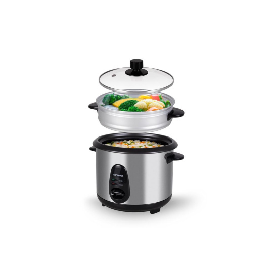 "Multifunkční hrnec. Jednoduché ovládání a rychlé vaření. Plně automatický provoz. Objem 1,5 l (pro přípravu 450 g rýže). Vhodný pro přípravu všech druhů rýže včetně rýže na sushi. Pařák pro šetrné a zdravé vaření ryb, zeleniny, případně pro ohřev dalších potravin. Světelná signalizace provozu a udržování teploty. Funkce Keep Warm uchová rýži teplou a čerstvou až 6 hodin. Jednoduché čištění, vyjímatelná vnitřní nádoba s nepřilnavým povrchem. Skleněná poklice s otvorem pro únik přebytečné páry. Dodávané příslušenství: špachtle na rýži, odměrka na rýži a vodu. Praktické rukojeti na obou stranách Protiskluzové nožičky. Napájení: 220 – 240 V~ 50 – 60 Hz, 500 W".