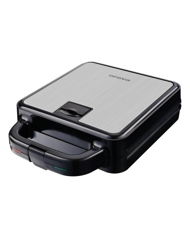 Multifunkční toustovač 3 v 1, 3 výměnné desky s kvalitním nepřilnavým povrchem, Sendvičovač pro 4 sendviče, vafle a grilování, Funkce otevřeného grilu, Tepelně izolované držadlo, Jednoduché čištění, plotny omyvatelné i v myčce nádobí, Světelná signalizace (napájení, ohřev) Tepelná pojistka, Napájení: 220 - 240V~ 50Hz, 1 400 W.
