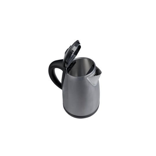 Elektrická varná konvice - šedá. Varná nádoba z ušlechtilé nerezové oceli. Objem 1,7l. Otevírání vrchního víka konvice stisknutím tlačítka. Varná nádoba na odnímatelném 360° otočném podstavci. Topné těleso překryté plotnou s ušlechtilé oceli. Stupnice hladiny vody. Ochrana před ohřevem bez vody. Auto vypnutí. Vyjímatelné filtrační sítko na vodu. Síťová šňůra odkladatelná v podstavci. Napájení 230V 50 Hz, 2000 W.