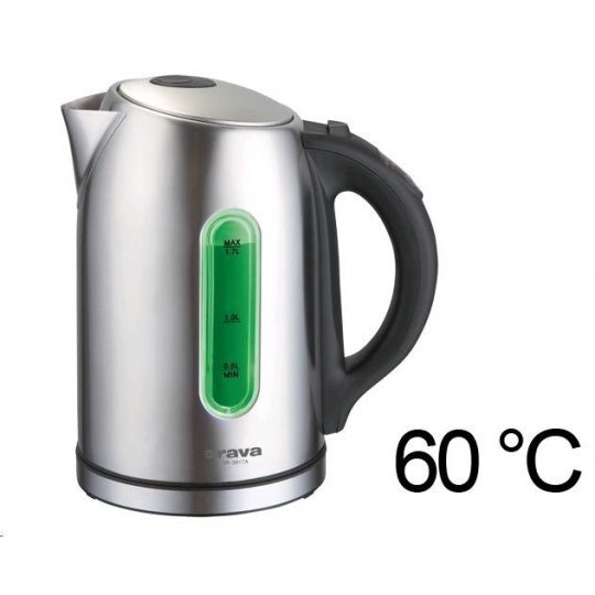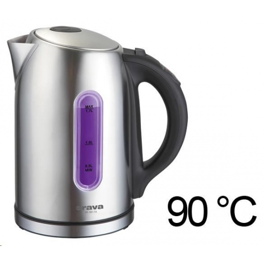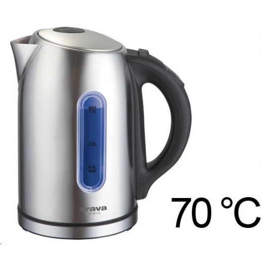 Nerezová rychlovarná konvice VK-3817 A s příkonem 2000 W a objemem 1,7 l. Konvice umožňuje elektronicky regulovat teplotu vody, zahřeje na předem zvolenou teplotu. Nastavení 5-ti různých teplot a stupnice se mění podle barev.