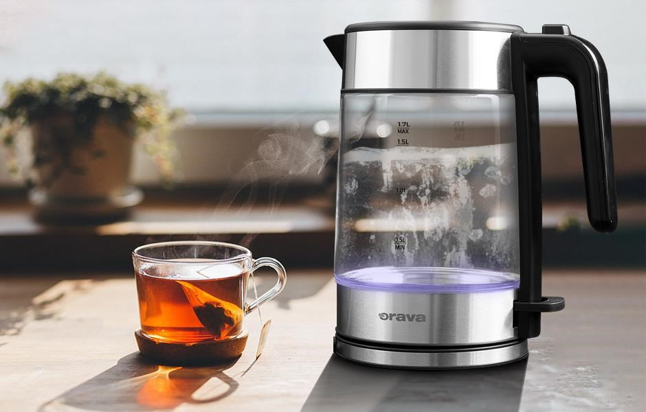 Čajová skleněná konvice, vnitřní LED osvětlení během provozu, moderní nerezová-skleněný design, objem vody: max. 1,7 l, varná nádoba na odnímatelném 360 ° otočném podstavci, topné těleso překryté deskou z ušlechtilé oceli, ochrana před ohřevem bez vody, automatické vypnutí, síťová šňůra s místem pro uložení v podstavci, napájení: 220 - 240V ~ 50 / 60Hz, max. 2 200 W.