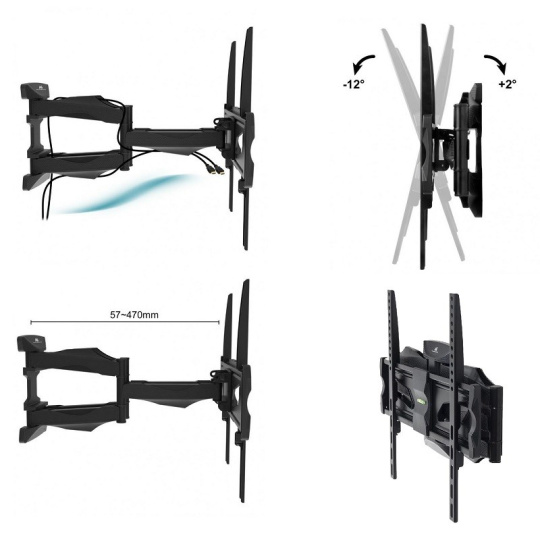 Kvalitní otočný držák LCD Fiber Mounts M7C81    Kvalitní velmi pěkný držák na televize 26-60", snadné polohování, otočný +/-75°, sklopný +2°/-12°, výsuvný 57-470mm, korekce roviny +/-3°, krytky kabeláže, VESA 100x100 až 400x400, nosnost 45kg    Potřebujete zavěsit televizi na spolehlivý a bezpečný držák a nechcete přitom moc utrácet? Můžeme Vám doporučit nástěnný Tv držák Fiber Mounts M7C81. Vysoká nosnost 45kg, dvě velmi pevná ramena, zajištění televizoru proti vysazení, větší instalační plocha pro ukotvení do stěny. Držák nabízí pohodlné polohování televizoru - otáčení na obě strany, naklonění obrazovky mírně nahoru nebo dolů, nastavení vzdálenosti od zdi dle potřeby. Výsuv obrazovky probíhá v ose uchycení, proto je držák vhodný pro ukotvení nejen na stěnu, ale i do připravených výklenků nebo do obývacích stěn. Pokud se Vám nepovedla montáž přesně do roviny a obrazovka není po zavěšení ve vodováze, není potřeba provádět novou instalaci, snadno upravíte rovinu televize bez nutnosti reinstalace. Nástěnný úchyt i ramena držáku jsou opatřeny designovými krytkami, pod kterými můžete skrytě vést veškerou kabeláž. Barevné provedení je černé, na držák poskytujeme prodlouženou záruku na 3 roky.        Pěkný kvalitní nástěnný držák na televize Fiber Mounts M7C81  Televizní držák otočný, sklopný, výsuvný, velmi pěkný, s vedením kabelů Fiber Mounts M7C81        Technické údaje:  nosnost 45kg podpora VESA standardu 100x100 až 400x400 doporučujeme na televizory s úhlopříčkou 26" až 60" vhodný na všechny typy televizorů - LCD, LED, OLED, QLED, plazma, 3D, Smart, prohnuté na Tv zn. Samsung, LG, SONY, Panasonic, ECG, GoGEN, Hisense, Changhong, Hyundai, Orava, Philips ... nastavitelná vzdálenost od zdi 57mm až 470mm otáčení Tv na obě strany +/- 75° náklon obrazovky nahoru i dolů +2° až -12° korekce roviny obrazovky +/- 3° instalační plocha na stěnu o rozměrech 160mm x 235mm (šířka x výška) zajištění televizoru proti vysazení integrovaná vodováha pro usnadnění montáže velmi snadné polohování bezpečná a spolehlivá ocelová konstrukce designové kryty ramen pro skryté vedení veškeré kabeláže součástí balení je univerzální instalační sada (šrouby, vruty, hmoždinky, podložky) barevné provedení černé záruka 3 roky    Držák na LCD, LED, OLED i QLED televize Fiber Mounts M7C81     Držák na Tv Fiber Mounts M7C81 podporuje VESA standardy televizorů:  VESA 100x100 VESA 200x100 a 100x200 VESA 200x200 VESA 300x100 a 100x300 VESA 300x200 a 200x300 VESA 300x300 VESA 400x100 a 100x400 VESA 400x200 a 200x400 VESA 400x300 a 300x400 VESA 400x400    Držák Tv Fiber Mounts M7C81 je vhodný pro zavěšení všech typů, značek a velikostí Tv, které mají hmotnost do 45kg a které podporují některý z výše uvedených VESA standardů. Na velikosti televizoru přímo nezáleží, můžete zavěsit i větší televizory za splnění výše uvedených podmínek..