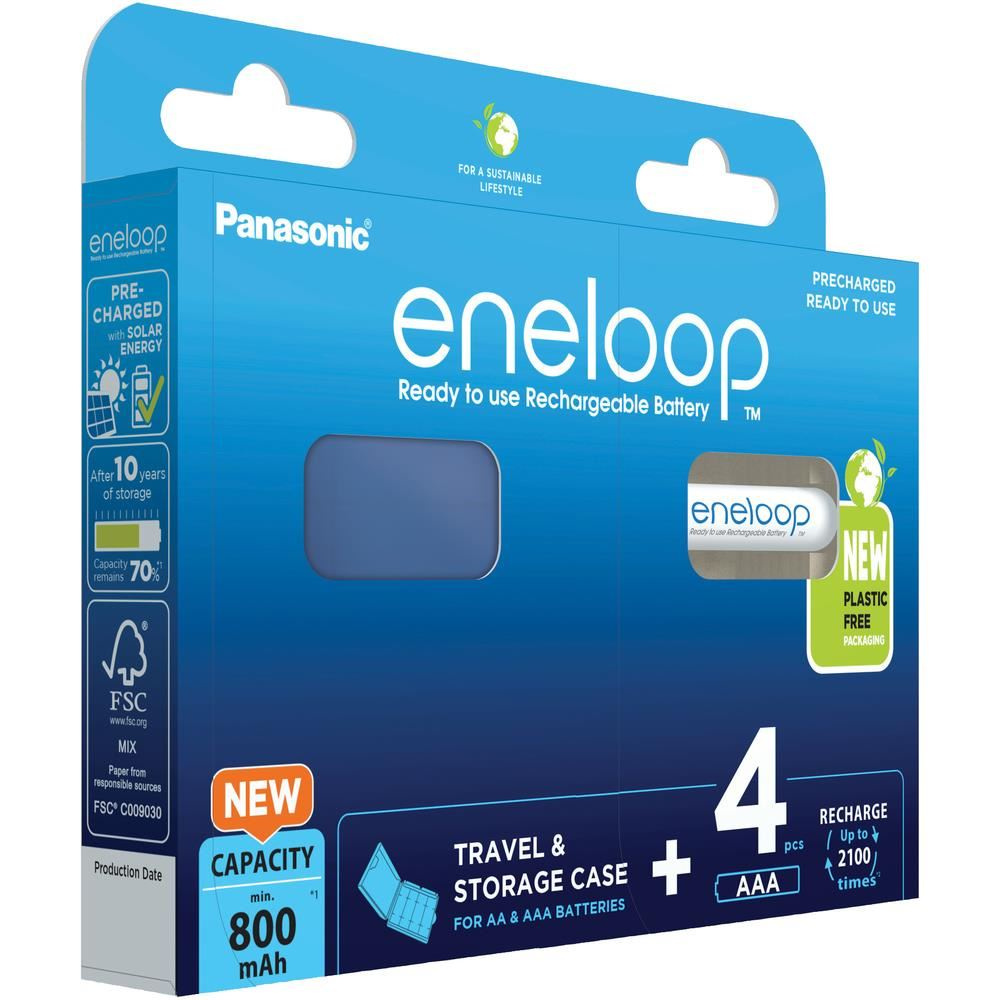 Toto balení Eneloop obsahuje 4 baterie AAA/Micro + praktické pouzdro.