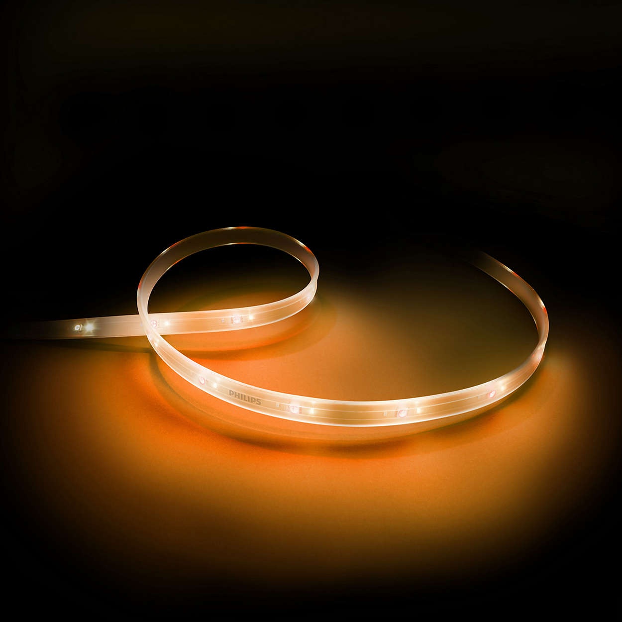 Díky výbornému světelnému pokrytí po celé délce a vysokému světelnému výkonu 1 600 lumenů poskytují světelné pásy Philips Hue dostatek světla k použití pro dekorační i funkční účely.