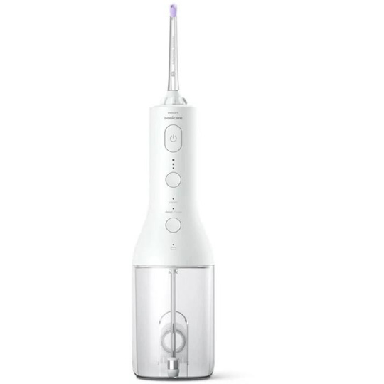 Povyšte péči o vaši ústní dutinu na zcela novou úroveň! Přenosná ústní sprcha Philips Sonicare Power Flosser v minimalistickém provedení a bílé barvě vaši ústní dutinu důkladně vyčistí během jediné minuty. Přístroj využívá standardní trysku se šetrným proudem vody pro perfektně přesné čištění a unikátní trysku Quad Stream, která vypouští proud vody ve tvaru písmena X a umožňuje dokonalé pokrytí mnohem větší oblasti. Snadno tak odstraníte až 99,9 % zubního plaku a nečistot z těžko přístupných mezizubních prostor, bočních plošek zubů a podél linie dásní.* Klinické studie prokázaly, že tento unikátní systém vyčistí až 8× více čištěného povrchu než podobné přístroje s jednoproudou technologií. Přístroj má nádržku o objemu 250 ml a můžete jej používat s čistou vodou nebo směsí vody a antimikrobiální ústní vody. Pro ty nejlepší výsledky doporučujeme ústní sprchu používat 1× denně. Součástí balení je praktický obal, ve kterém můžete přístroj hygienicky uskladnit nebo si jej přibalit s sebou na cesty.