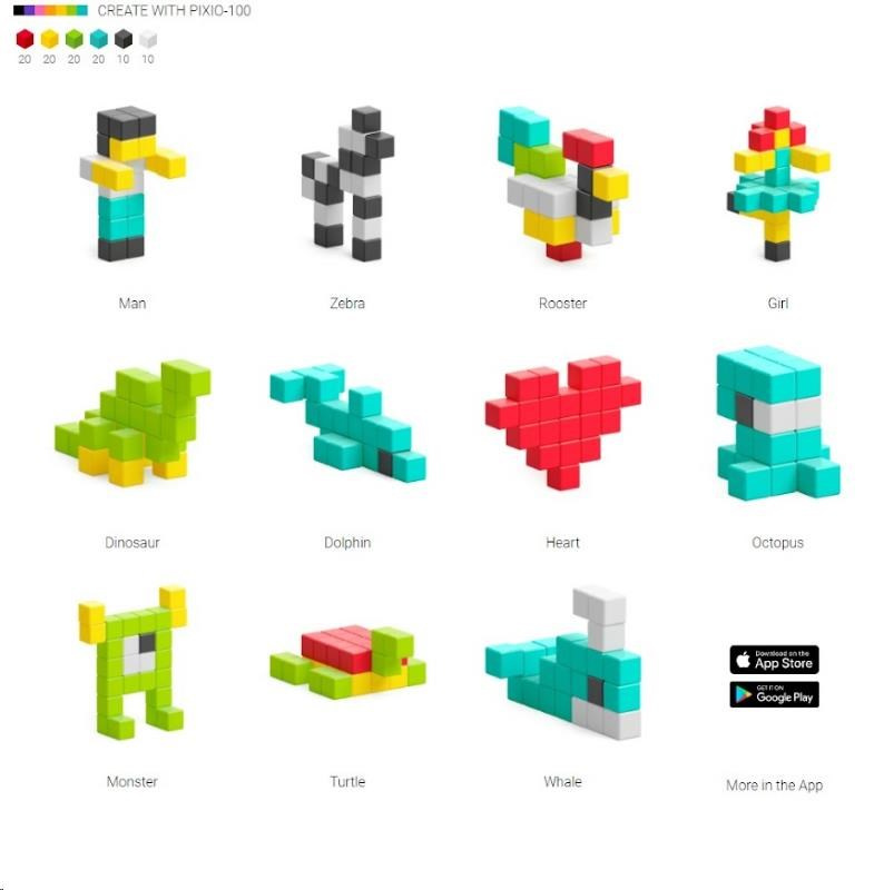 a šikovnost tvůrce. Všechny modely PIXIO jsou mezi sebou kompatibilní.