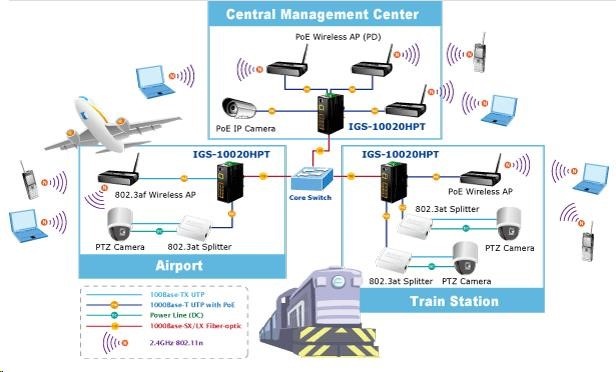 Průmyslový spravovatelný přepínač 8x 10/100/1000Base-T, 2x SFP 100/1000Base-X, včetně PoE IEEE 802.3at injektorů, výkon až 270W. Podpora IPv6, Web/SNMPv3 management, 255 VLAN 802.1Q sítí, Spanning Tree, Rapid Spanning Tree, agregace linek 802.3ad LACP, Port shaper, QoS. Alarmový výstup při výpadku, krytí IP30, hliníková skříň, pracovní teplota -40~75°C. Přepěťová ochrana ESD+EFT LAN i napájecích portů do 6kV. Montáž na DIN lištu nebo přímo na zeď..... více