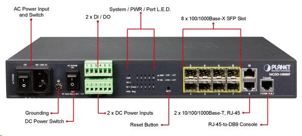 Planet MGSD-10080F Metro switch 8x SFP(DDM) 100/1000Base-X, 2x 1000Base-T, AC+DC, DI/O, SNMPv3, IGMPv3,IPv6
