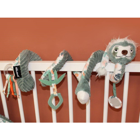 Plyšová spirála na postýlku, na kočárek nebo na hrazdičku, v podobě roztomilého lenochoda upoutá pozornost každého miminka. Úžasně heboučká spirála s chrastítkem, zrcátkem, kousátkem i pískací hračkou stimuluje dětské smysly, rozvíjí jemnou motoriku a koordinací očí a rukou. Prohlédněte si originální spirálu, která vykouzlí úsměv na tváři dětem i rodičům..