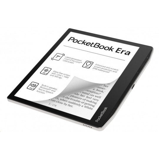 Čtečka Pocket Book 700 Era je vybavena 7" displejem E Ink Carta 1200, který funguje na principu elektronického inkoustu, takže při čtení šetří vaše oči. V porovnání se svým předchůdcem má dotyková obrazovka navíc o 20 % rychlejší dobu odezvy a o 15 % vyšší kontrast pro ještě pohodlnější čtení.
