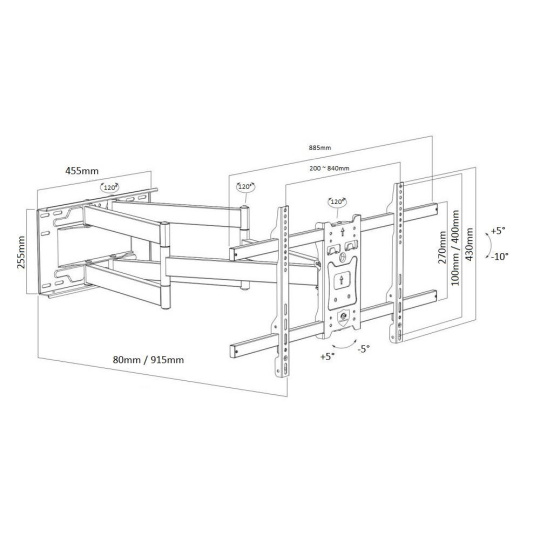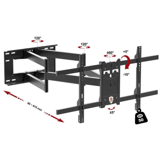 Kvalitní nástěnný držák na Tv 43-90", výsuvný 80-915mm, otočný +/-65°, náklon +5°/-10°, korekce roviny +/-5°, VESA 200x100 až 800x400, nosnost 50kg.... více