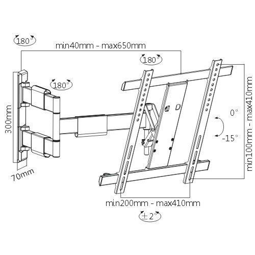 Precizní držák na Tv Fiber Mounts NICE1 Kvalitní držák na Tv 32-55", otočný +/- 90°, sklopný 0-15°, vedení kabeláže, korekce roviny, VESA 200x100 až 400x400, nosnost 25kg Špičkový televizní držák, který má širokou škálu polohování ve velkém rozsahu díky vynikající konstrukci a preciznímu provedení. Držák Fiber Mounts NICE1 je vhodný na Tv 32-55", televizi můžete otočit kolmo na obě strany, naklápět až o 15°, odsunovat a přisunovat ke zdi od 4cm do 65cm a upravit rovinu obrazovky. Ramena držáku jsou osazena úchyty na kabely. Konstrukce držáku je velmi pevná, ani při maximálním zatížení 25kg nedochází k prověšení a nevznikají žádné vůle. Ovladatelnost je velmi snadná. Předností tohoto držáku je i jeho dizajnové zpracování. Barva černá. Záruka 5 let. Velmi kvalitní a velmi pěkný televizní držák pro lidi, kterým jde o kvalitu, dizajn a velmi snadné polohování televize - Fiber Mounts NICE1 Technické údaje: maximální zatížení 25kg podporuje VESA standardy 200x100 až 400x400 ideální na televize s úhlopříčkou 32" až 55" otáčení na obě strany +/- 90° (kolmo ke zdi) naklápění Tv směrem dolů až o 15° minimální vzdálenost televize od zdi pouhých 40 mm maximální vysunutí televize od zdi až na 650 mm snadná korekce roviny obrazovky velmi pevná, ocelová konstrukce precizní zpracování, velmi snadné polohování Tv velmi pěkný dizajn krytky na uchycení kabeláže barva černá matná záruka 5 let Televizní držák precizního provedení a špičkové kvality, otáčení Tv kolmo ke zdi, naklápění, vysouvání - Fiber Mounts NICE1Držák na LCD LED OLED QLED prohnuté Tv, otáčení do stran i kolmo ke zdi, naklápění Tv - Fiber Mounts NICE1 Nástěnný držák Tv Fiber Mounts NICE 1 podporuje VESA standardy: VESA 200x100 VESA 200x200 VESA 300x100 VESA 300x200 a 200x300 VESA 300x300 VESA 400x200 a 200x400 VESA 400x300 a 300x400 VESA 400x400 Televizní držák Fiber Mounts NICE1 je vhodný pro zavěšení všech typů, značek a velikostí televizí, které podporují kterýkoliv z výše uvedených VESA standardů a jejichž hmotnost není vyšší jak 25kg. Je možné zavěsit i větší televize jak 55", televizi ale neotočíte kolmo ke zdi, u televize 65" bude otáčení do stran 80°. Držák Fiber Mounts NICE1 je vhodný pro zavěšení všech typů a značek televizí: LCD televize LED televize OLED televize QLED televize prohnuté televize (curved) Smart, HD, UHD Tv.