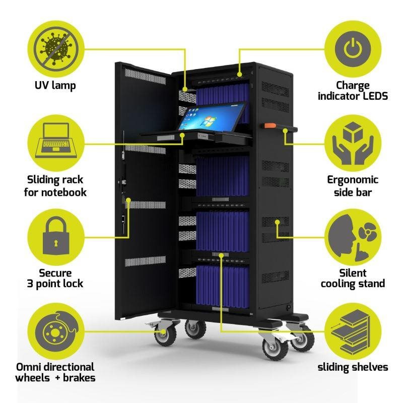 Nejefektivnější řešení pro bezpečné nabíjení až 40 tabletů a 1 notebooku