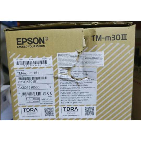 POŠKOZENÝ OBAL - Epson TM-m30III, USB, USB-C, BT, Ethernet, Wi-Fi, 8 dots/mm (203 dpi), cutter, white