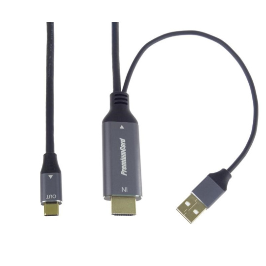 PremiumCord HDMI2.0 na USB-C kabel pro monitory se vstupním USB-C konektorem, 4K@60Hz,1080p Aluminium 2m
