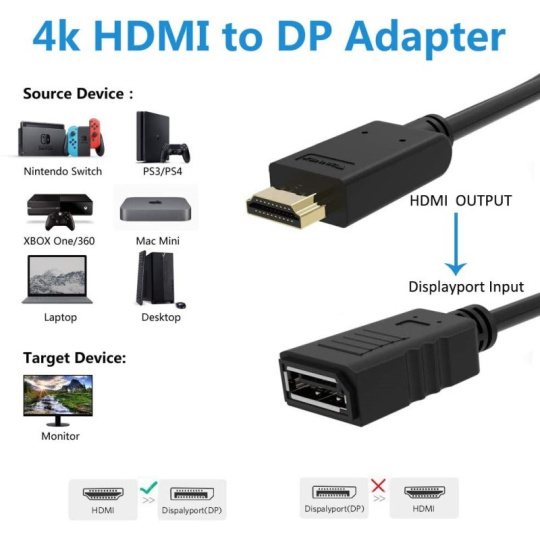 PremiumCord adaptér HDMI to DisplayPort Male/Female s napájením z USB - Vstupní konektor: HDMI /Male - Výstupní konektory: DisplayPort /Female - Převádí signál HDMI na DisplayPort signál - Na vstupuHDMI 1.4 přijímač – Link rate up to 2.97 Gbps/data pair. – Hloubka barev až 16 bits na barvu – 3D video timings - Výstup kompatibilní s DP 1.2 – Video rozlišení až 4Kx2K @ 30 Hz; 1920 x 1080 @ 120 Hz. – Audio 7.1 až do 192 kHz sample rate. - Malá spotřeba, aktivní 500 mW & standby 25 mW - Napájení pomocí USB konektoru - Barva : černá.