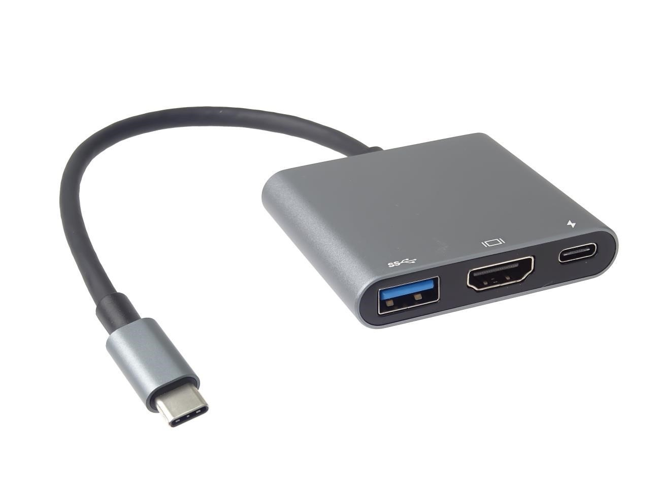 PremiumCord Adaptér USB-C na HDMI + USB3.0 + PD, rozlišení 4K a FULL HD 1080p