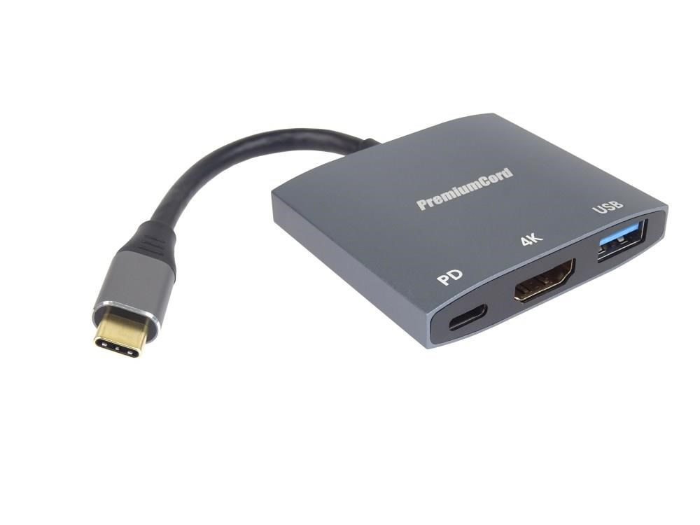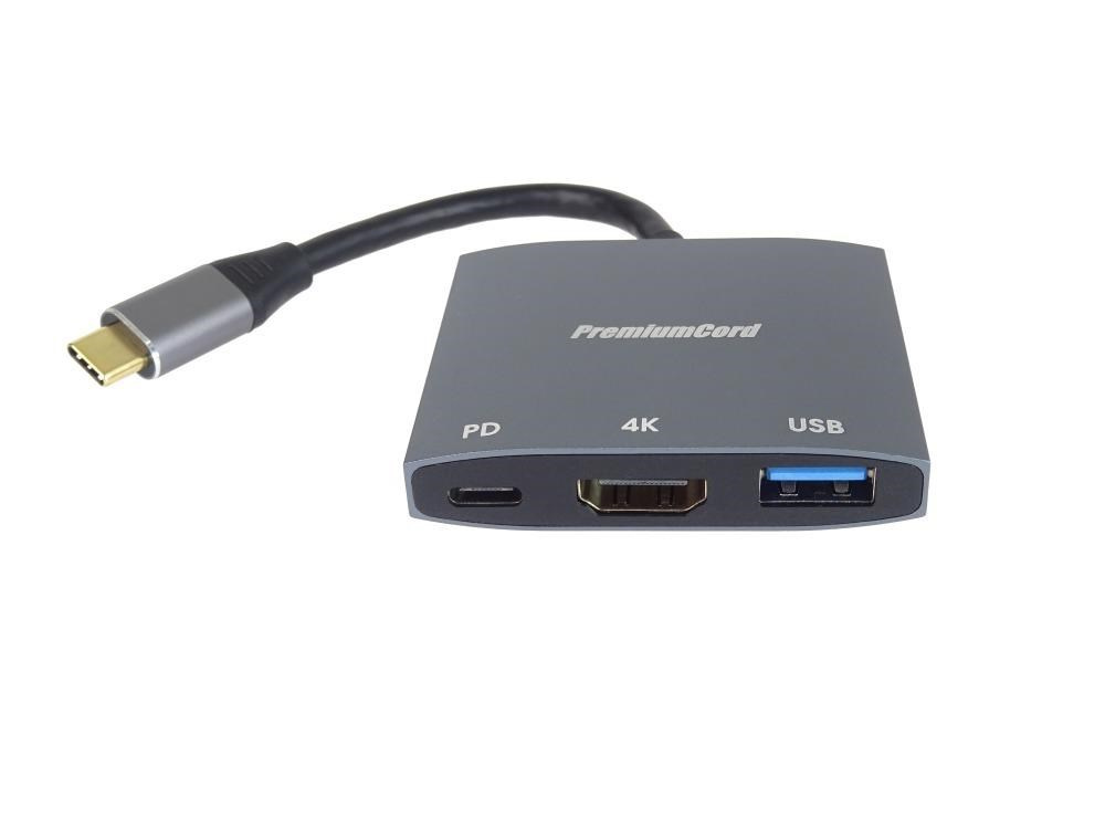 PremiumCord adaptér USB-C na HDMI, USB3.0, PD, rozlišení 4K a FULL HD 1080p