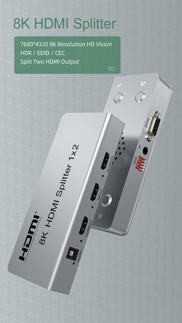 Splitter podporuje HDMI signál s rozlišením až 8K@60Hz, 4K@120Hz nebo FULL HD 1080p