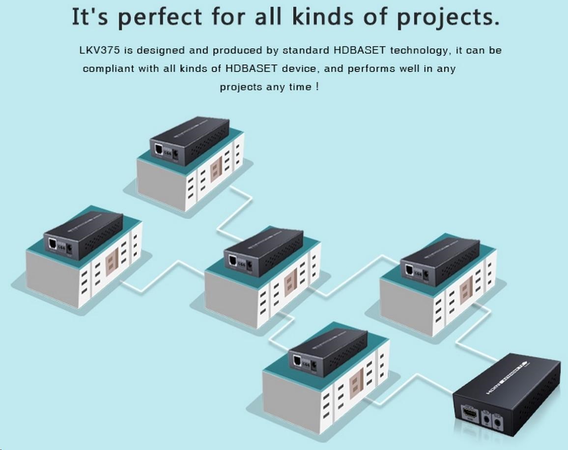 Zařízení umožňuje po síťovém kabelu přenést HDMI 4K x 2K nebo FULL HD 1080p signál až na 70m.