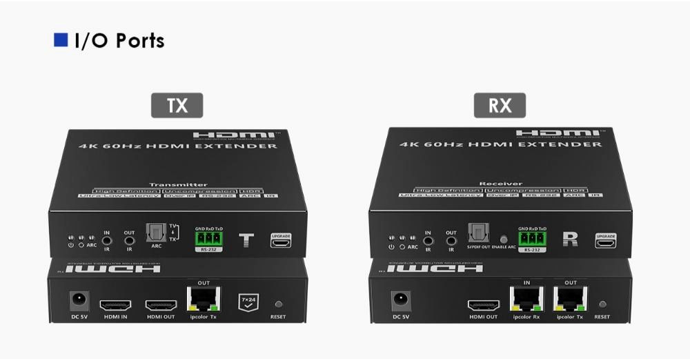 Zařízení umožňuje po jednom síťovém kabelu nebo prostřednictvím 10G LAN sítě přenést nekompreovaný 4K@60Hz HDMI signál s extrémně malým zpožděním a ve špičkové kvalitě až na 80m a současně IR signály, RS232 a digitální zvuk.
