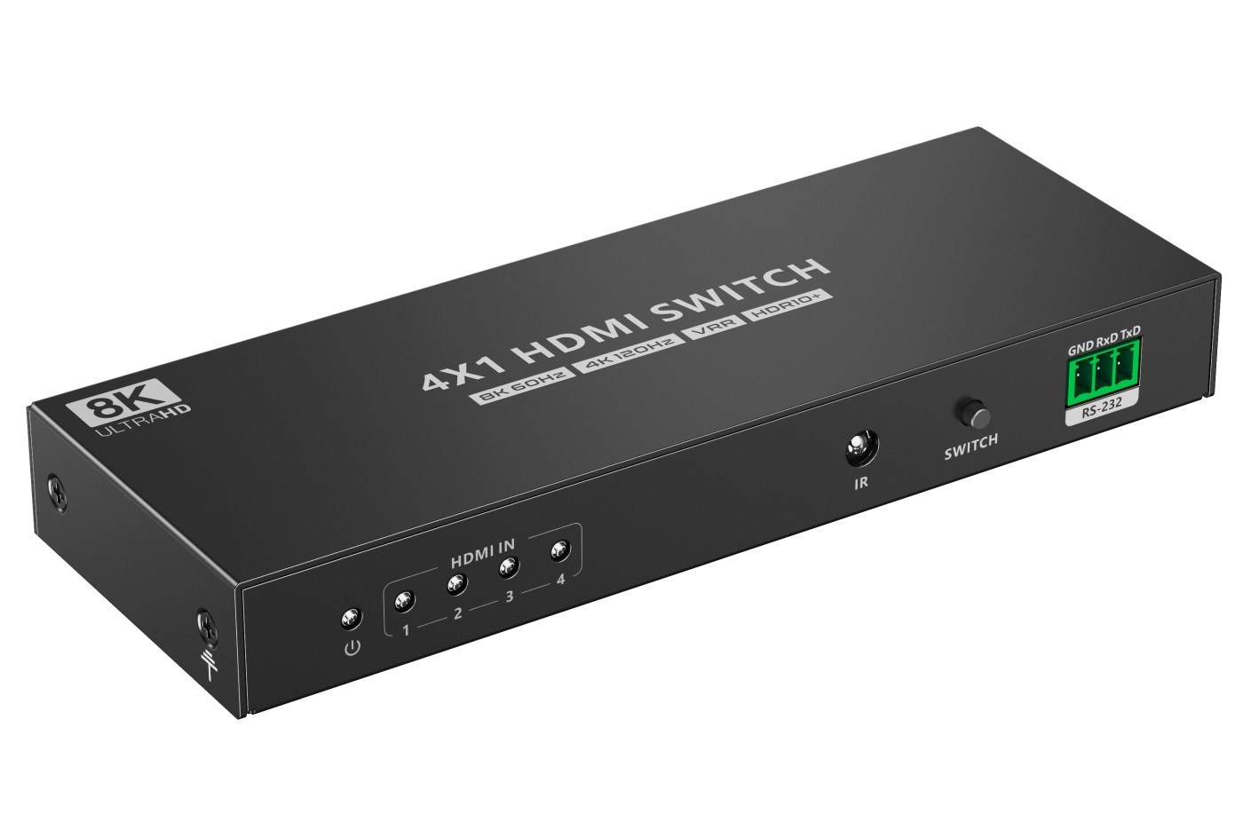 PremiumCord HDMI switch 4:1 s podporou rozlišení 8K@60Hz,4K@120Hz, 1080P, HDR, s dálkovým ovladačem