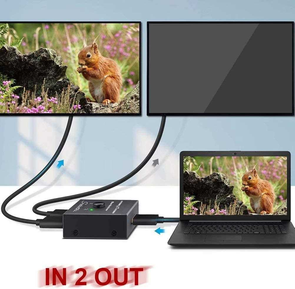 • Obousměrný 2x1 / 1x2 Přepínač HDMI lze použít dvěma různými způsoby: připojit 2 vstupní zdroje s 1 výstupním displejem nebo 1 vstupní zdroj se 2 displeji (funguje pouze na 1 obrazovce, nikoli současně).