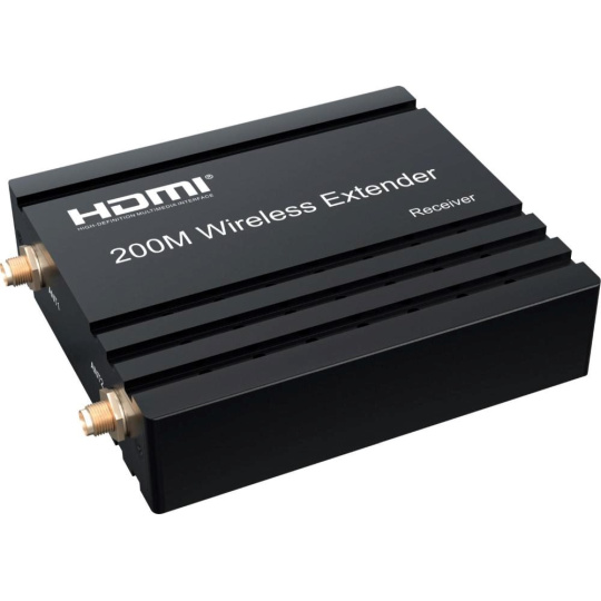 - Bezdrátový vysílač a přijímač signálu HDMI umožňuje připojit HDMI monitor nebo promítačku na vzdálenost až 200m na otevřeném prostranství.