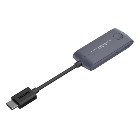 - Vysílací a přijímací adaptéry mají krátký HDMI kabel pro snadné zapojení do počítače a zobrazovače nebo TV.
