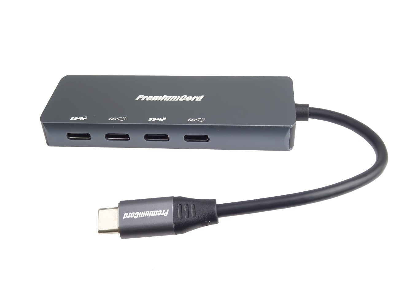 PREMIUMCORD Hub USB-C na 4x USB 3.2 Typ-C, 5G SuperSpeed, Aluminum
