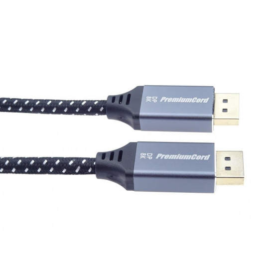 PremiumCord DisplayPort 1.4 přípojný kabel M/M pro rozlišení 8K, kovové krytky a zlacené konektory, 2m